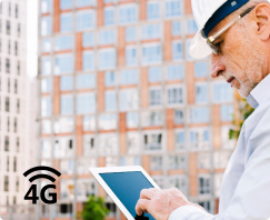 Funciona de manera independiente de la red eléctrica y del WiFi de obra, asegurando conexión estable.