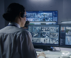Operadores en central activa permanentemente, con alertas directas a fuerzas de seguridad y reporte de fallas.